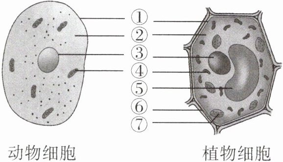 (2) 不同点:植物细胞有[⑤]____、[⑥]____,绿色部分的植物细胞还有[⑦]____,而动物细胞不具有这些结构。