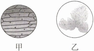 5. 某同学在显微镜下观察洋葱鳞片叶内表皮细胞临时装片和人的口腔上皮细胞临时装片时看到的图像,请回答第(1)~(2)题。