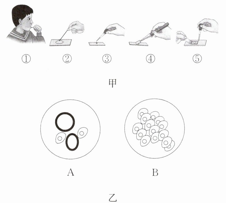 (4)图乙中A同学观察效果欠佳的原因是视野中有气泡,建议该同学在图甲所示制作临时装片的过程中,步骤
