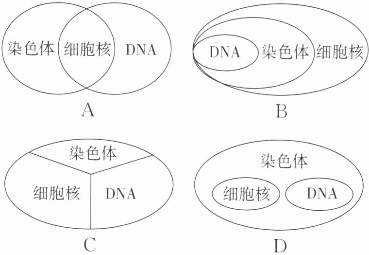 11. 下列能正确表示细胞内细胞核、染色体、DNA 三者关系的是(