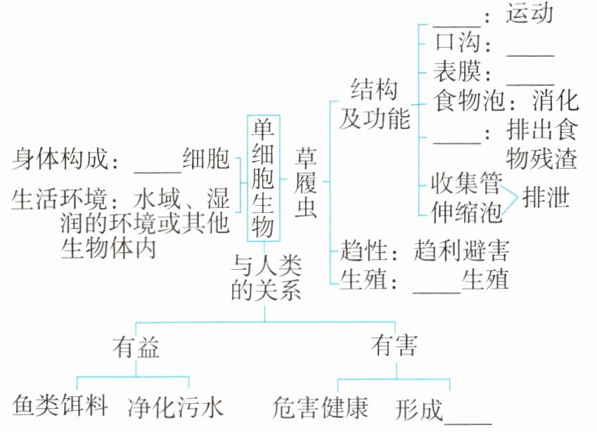 (2)草履虫一个细胞就能独立完成多项生命活动,如通过