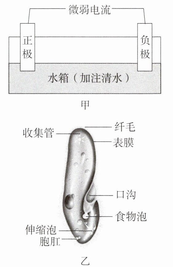 从水样中吸取草履虫置于培养液中,查阅资料发现草履虫在微弱电流的刺激下会由正极游向负极,于是设计了利用水槽电极法分离草履虫的装置(如图甲所示)。