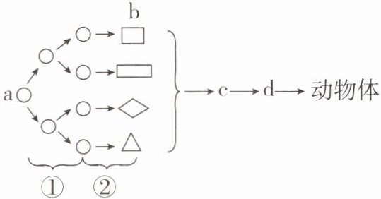4. 右上图所示是动物体的构成模型,①②过程表示细胞不同的生理活动,a~d 表示动物体的结构层次。下列叙述正确的是(