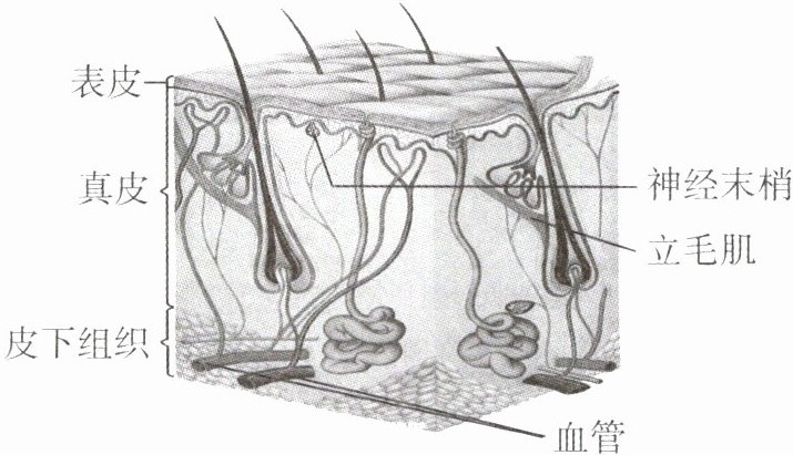 4. (甘肃兰州)皮肤(如下图所示)是人体最大的器官。下列关于构成皮肤的组织的描述,错误的是(