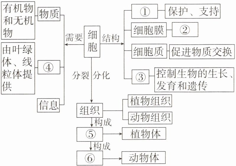 1. 人类对细胞的认识经历了漫长的岁月,凝聚着一代又一代科学家的心血。细胞是生物体结构和功能的基本单位。下图是关于细胞的概念图,请据图回答下列问题。