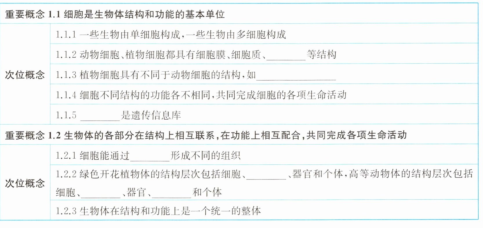 概念 1 生物体具有一定的结构层次,能够完成各项生命活动
