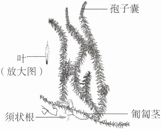7. (江苏苏州)石松又名“伸筋草”,是一种药用植物(如下图所示),叶呈披针形,螺旋状排列;匍匐茎细长,在地面上横向生长,侧枝直立;根为须状根;孢子囊生于孢子叶腋,常集聚枝顶,形成孢子囊穗。该植物属于(