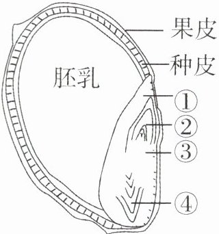 (3) 用放大镜观察菜豆种子的结构时,分开两片子叶,可以看到胚芽、胚轴和胚根,其中与子叶相连接的部分是