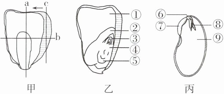 (1) 图乙所示是玉米种子的纵剖面,该剖面是刀片沿着图甲所示的
