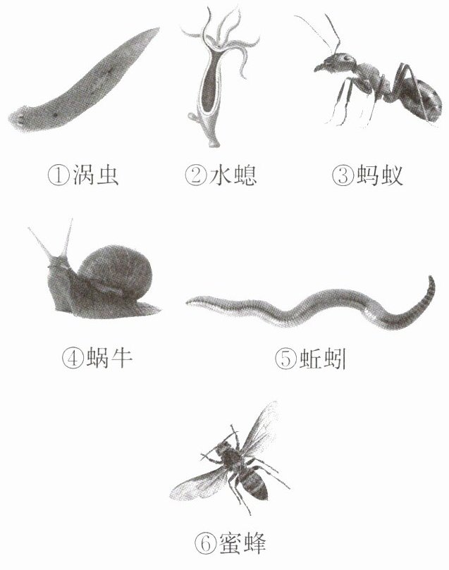 10. 某兴趣小组对下图中的动物进行了研究学习,了解了它们的主要特征。请回答第(1)~(4)题。