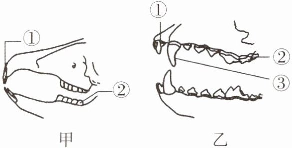 )A.图甲表示兔的牙齿,图乙表示狼的牙齿