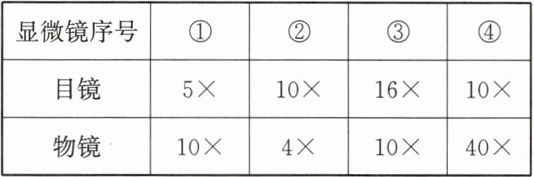 )。|显微镜序号|①|②|③|④|