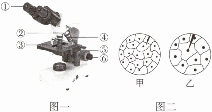 ]____,可清晰看到乙视野。比较图二甲视野和乙视野,其中细胞放大倍数较大的是乙