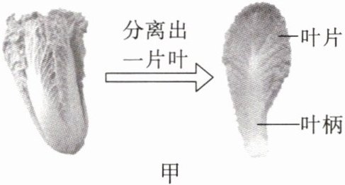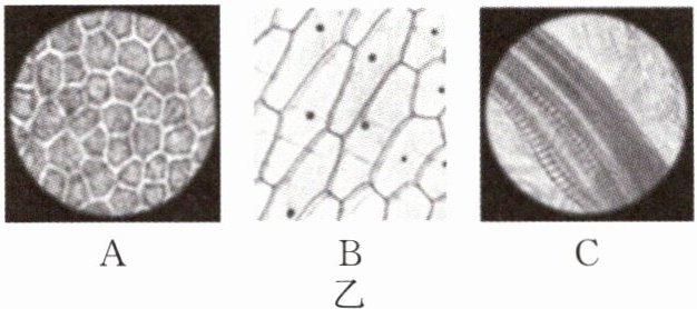 (3)同学们将白菜浸泡在加入红墨水的水中,一段时间后,将白菜叶片横切或纵切,发现部分结构为红色,取白菜叶的不同部位制成临时玻片标本,显微镜下观察到的视野如图乙。