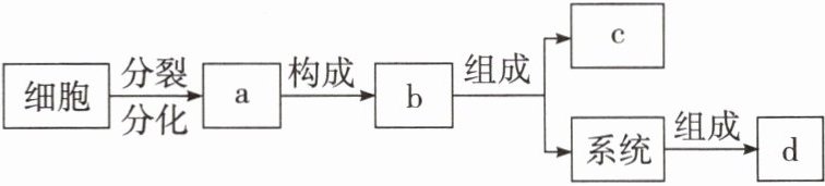 D.动物体的结构层次可表示为细胞$\xrightarrow{}$a$\xrightarrow{}$b$\xrightarrow{}系统\xrightarrow{}$d