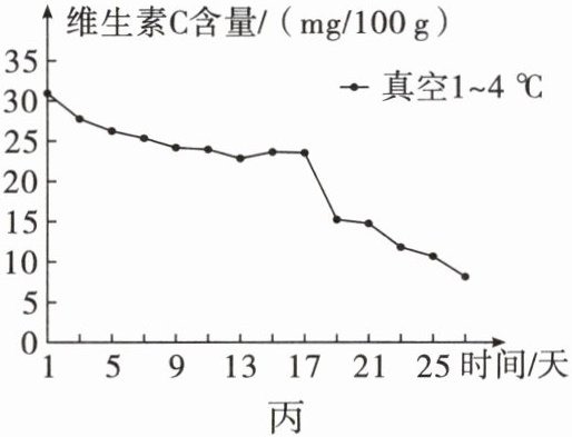 (4)研究人员进行了测定贮藏白菜时维生素 C 含量随时间的推移而变化的实验,结果如图丙。