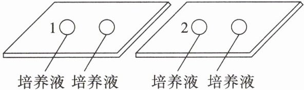 5. 为探究某物质对草履虫的刺激是有利还是不利,李明同学在两片载玻片上都滴两滴相同的草履虫培养液(如图所示),用放大镜观察培养液中的草履虫,再用牙签在1、2号载玻片的两个液滴之间轻轻地划一下。请回答下列问题。