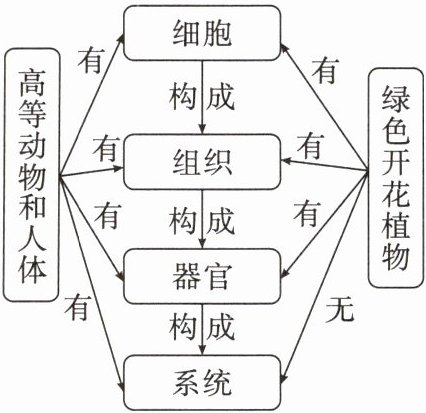 (1)由图示可知,人体和高等动物比绿色开花植物多的一个结构层次是