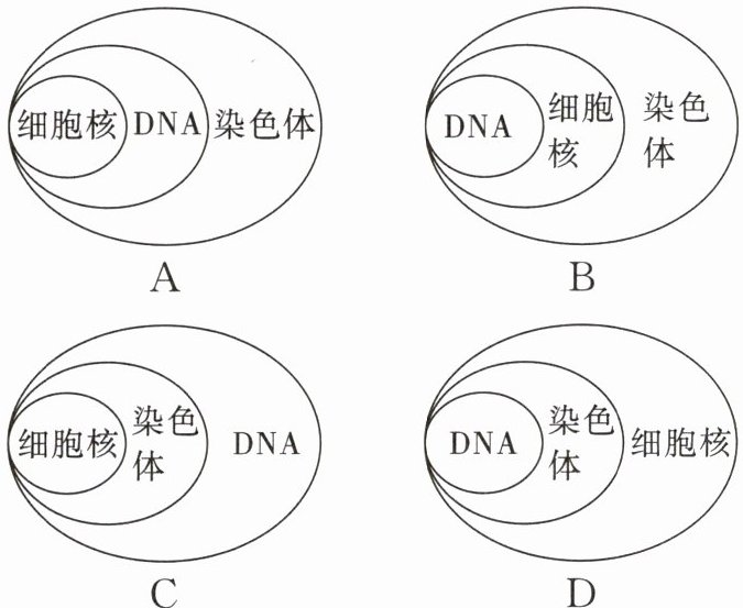 9. 下列图解中正确表示细胞核、染色体、DNA 之间层次关系的是(