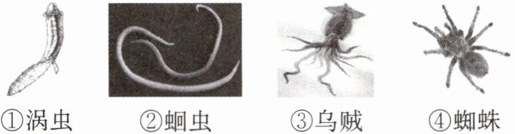 ①涡虫 ②蛔虫 ③乌贼 ④蜘蛛