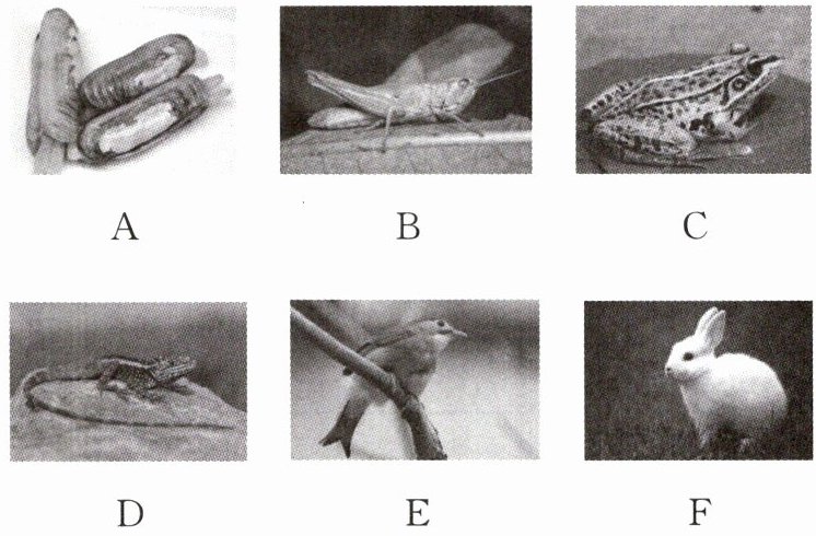 (6)根据体内是否有脊柱可以把以上六种动物分成两类,其中与D属于同一类的还有