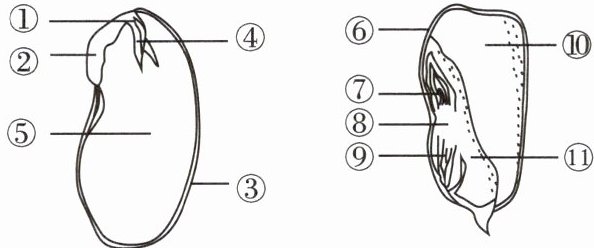 9. 观察菜豆种子和玉米粒纵剖结构图,据图回答下列问题。