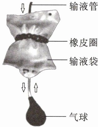 12. 学习了鸟类的特殊呼吸方式后,爱科学生物兴趣小组成员利用输液袋与输液管、橡皮圈、气球等制作了一个鸟类呼吸系统模型(如图所示),其中输液管模拟的是气体进出鸟类呼吸系统的通道。