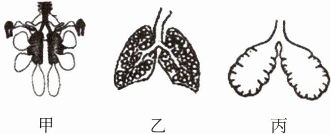 (2)甲;有气囊辅助肺呼吸;身体呈流线型,可减少飞行中空气的阻力;前肢变成翼,翼上生有几排大型的羽毛