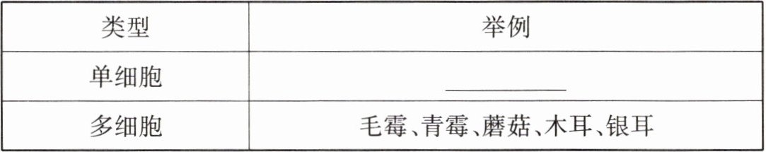 ||多细胞|毛霉、青霉、蘑菇、木耳、银耳|