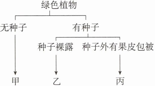 1. 如图表示葫芦藓、肾蕨、苏铁和玉米的分类,其中乙、丙所代表的植物分别是(