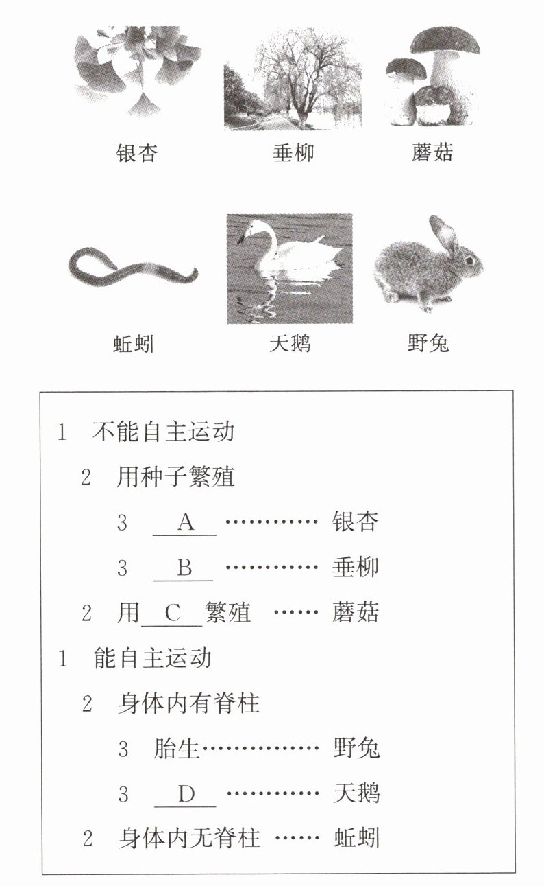 。(3)同学们沿途还观察到了青蛙、蝴蝶等动物,如果把青蛙、蝴蝶和蚯蚓归为一类,把野兔和天鹅归为一类,那分类依据应该是