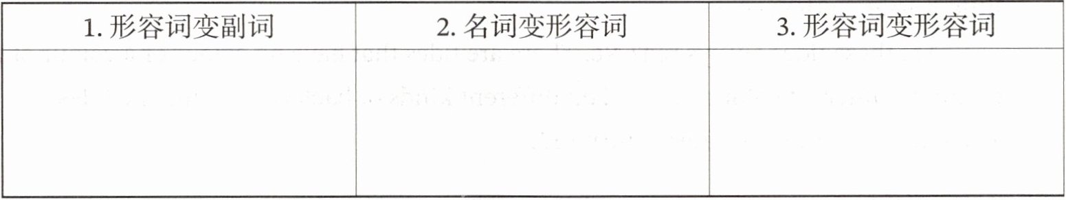 | 1. 形容词变副词 | 2. 名词变形容词 | 3. 形容词变形容词 |