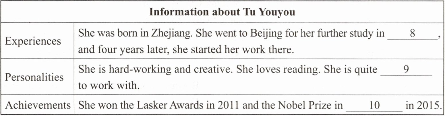 听一篇短文,回答第8—10小题,完成信息记录表