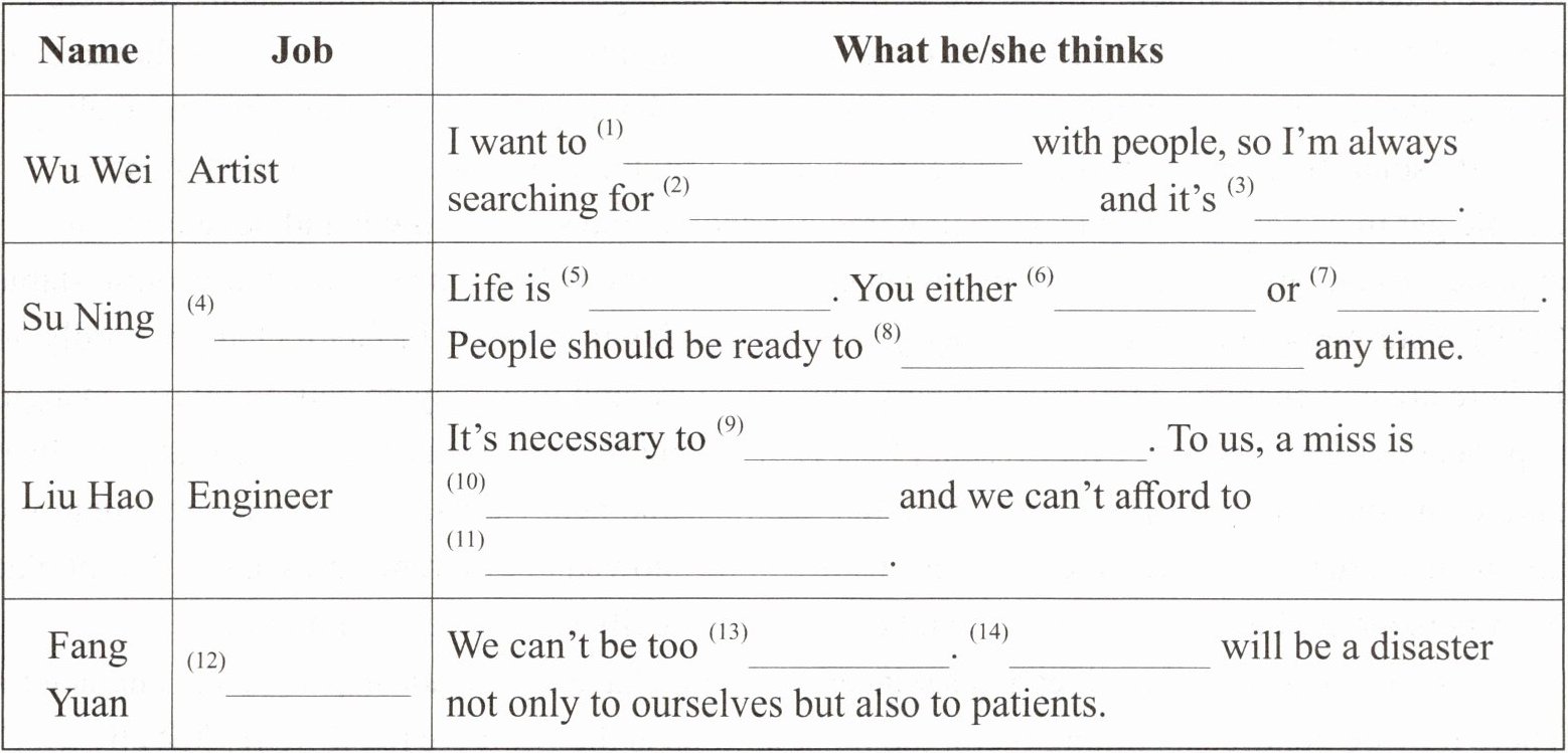 一、根据课文内容填写单词或词组,完成信息表