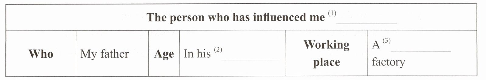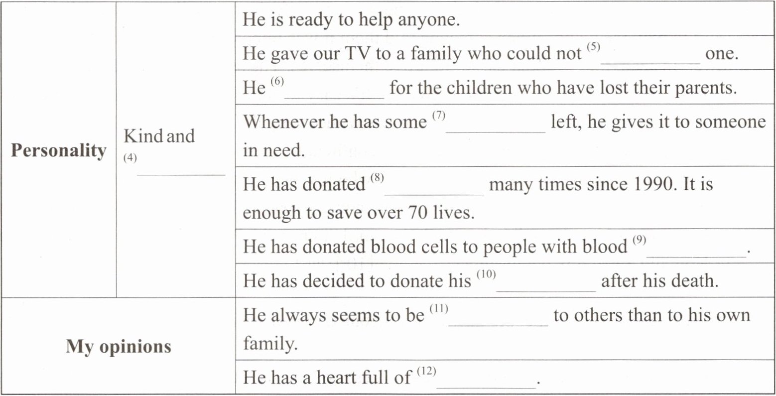 一、根据Part A填写单词,完成信息表