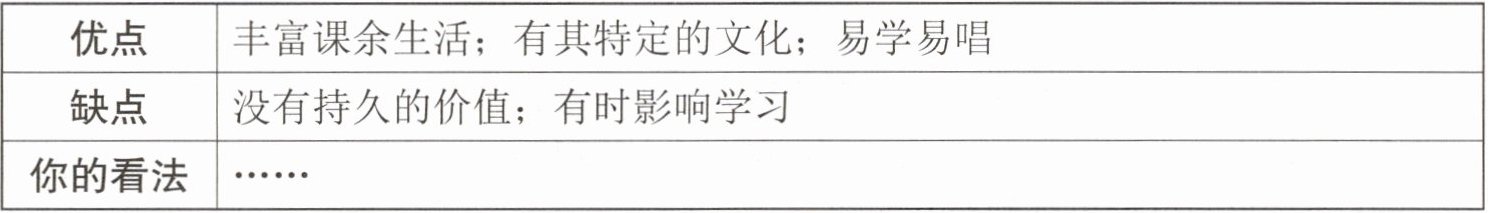 |优点|丰富课余生活;有其特定的文化;易学易唱|