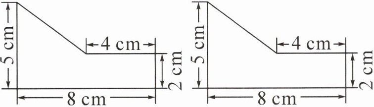 (4+8)×2÷2+5×(8−4)÷2=22(平方厘米)