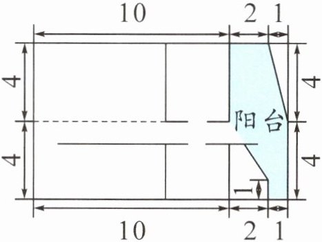 4.下图是乐乐家住房的平面图,你知道他家阳台(涂色部分)的面积是多少平方米吗?(单位:米)