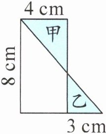 6. 如图,一张长方形卡纸与一张三角形卡纸部分重叠在一起,三角形甲的面积比乙的面积大多少平方厘米?