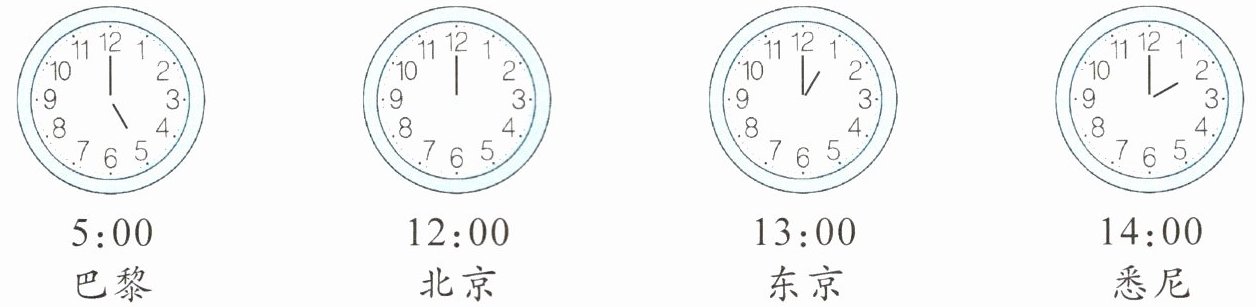 (3)如图,与北京时间相比,东京时间早 1 小时,记为+1 时;巴黎时间晚 7 小时,记为-7 时。以北京时间为标准,当北京时间是 7 月 1 日 23 时,悉尼时间是(