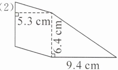 (2)6.4×5.3+9.4×6.4÷2=64(平方厘米)