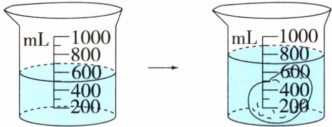 4. 如图,左边的量杯里有多少毫升水?土豆占的空间相当于多少毫升水占的空间?