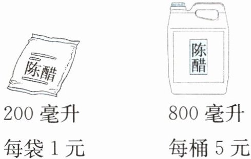 (2)1×4=4(元) 5>4,袋装的陈醋便宜。 5-4=1(元)