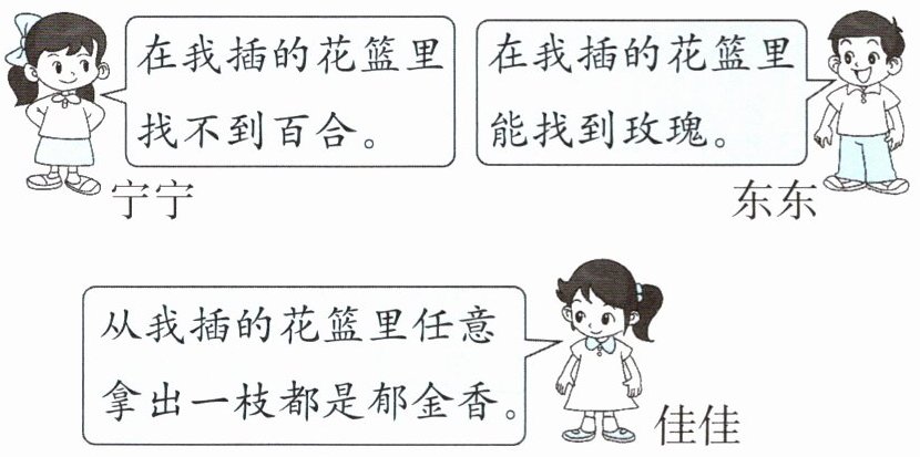) 一定() 不可能()(3) 佳佳插的花篮里会有百合。