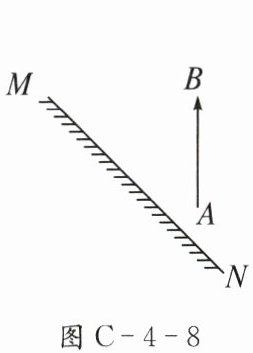 (2)如图C-4-8所示,请根据平面镜成像特点,作出物体AB在平面镜中所成的像A’B’(保留作图痕迹)。