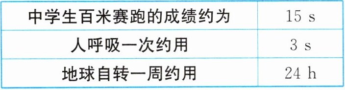 | 中学生百米赛跑的成绩约为 | 15 s |
