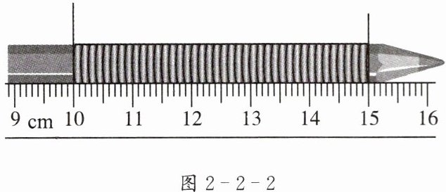 1. 将金属丝在铅笔上紧密地绕了 40 圈,然后用毫米刻度尺测得其长度为 5.00 cm,由图 2 - 2 - 2 可计算出该金属丝的直径为______cm。