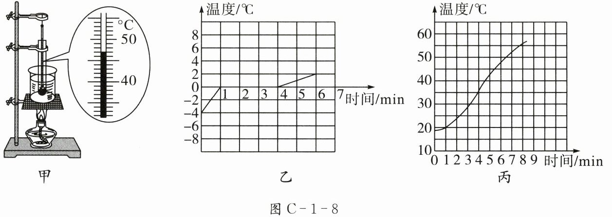 (4)图C-1-8乙和丙是小丽绘制的冰和蜡的熔化图像,则图______是蜡的熔化图像,判断的依据是______。