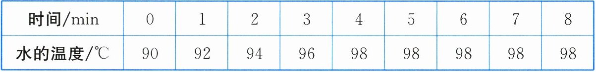 |水的温度/℃|90|92|94|96|98|98|98|98|98|
