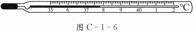 13. 如图C-1-6所示,体温计的分度值为______℃。用该体温计测量体温时______(选填“能”或“不能”)离开人体读数,该体温计______(选填“能”或“不能”)用沸水消毒。